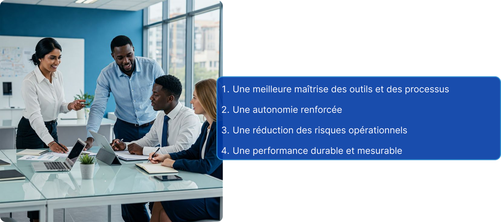 La réussite d’une transformation digitale repose autant sur la technologie que sur les femmes et les hommes qui la portent. Chez 3NTech-Services, nous concevons la formation comme un levier stratégique permettant de renforcer les compétences, sécuriser les opérations et pérenniser les investissements technologiques.